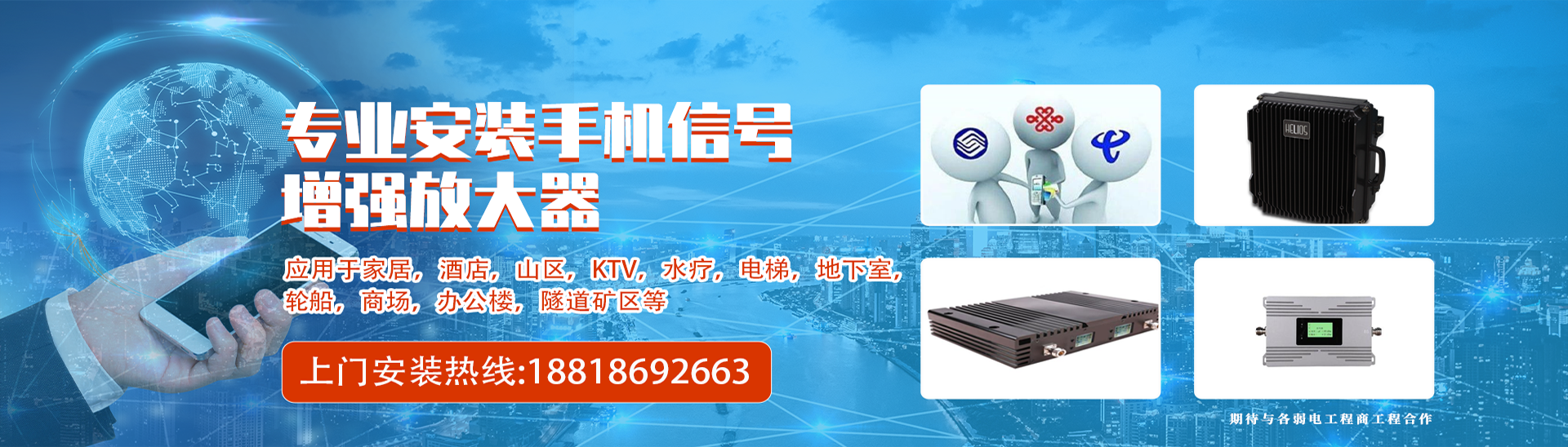 ? ? ? ? 公司擁有一批射頻微波安裝師和設計領域的人員、可提供現場勘察、方案設計、工程預算、設備安裝、開通調試、網絡優化、設備售后維護等一系列技術服務。因而造就了本公司的工程各領域優勢。目前公司移動通信網絡覆蓋產品品種齊全、涵蓋了2G、3G、4G、5G。GSM、CDMA、DCS、PCS、WCDMA、FDD-LTE的各種選帶直放站、光纖直放站、數字選帶直放站、多制式數字光纖分布系統、特殊場所信號屏蔽系統等等。